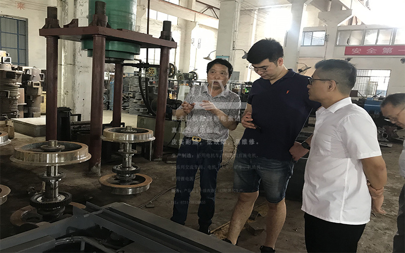 領(lǐng)導(dǎo)給客戶詳細介紹了我廠的產(chǎn)品,并一同進入生產(chǎn)車間實際了解礦用電機車及礦用牽引電機等配件的生產(chǎn)、測試。