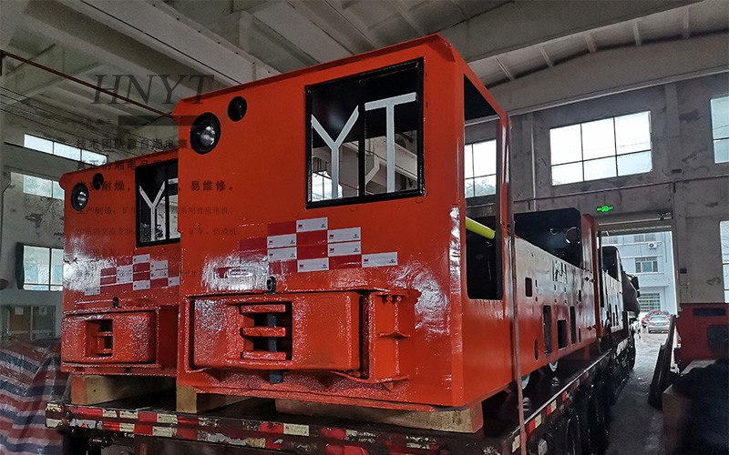 一批CTL8噸湘潭蓄電池電機(jī)車由專車發(fā)往煤礦,兩臺(tái)是變頻調(diào)速,兩臺(tái)是斬波調(diào)速。