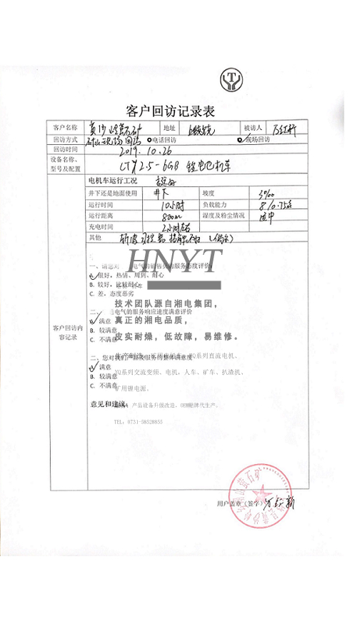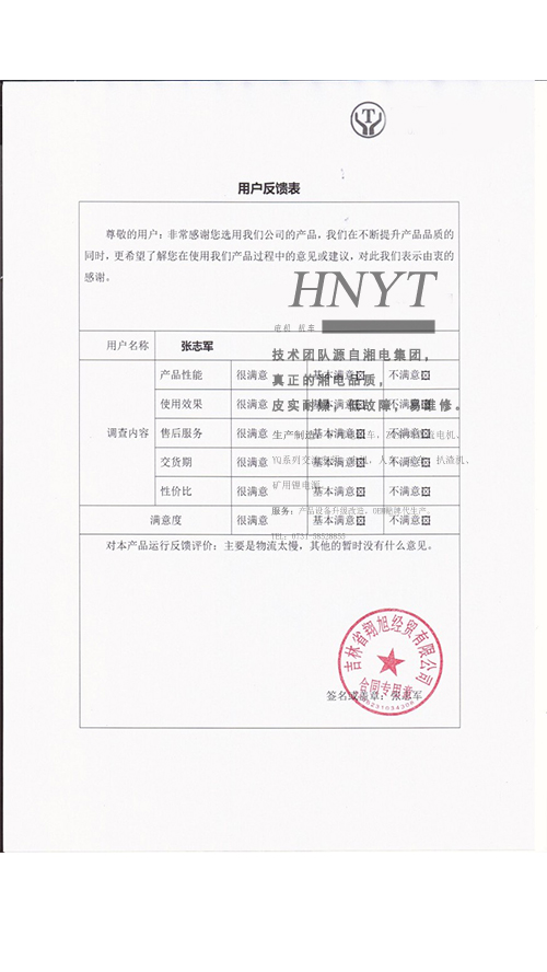 客戶反饋表(ZQ-21礦用直流牽引電機(jī))
