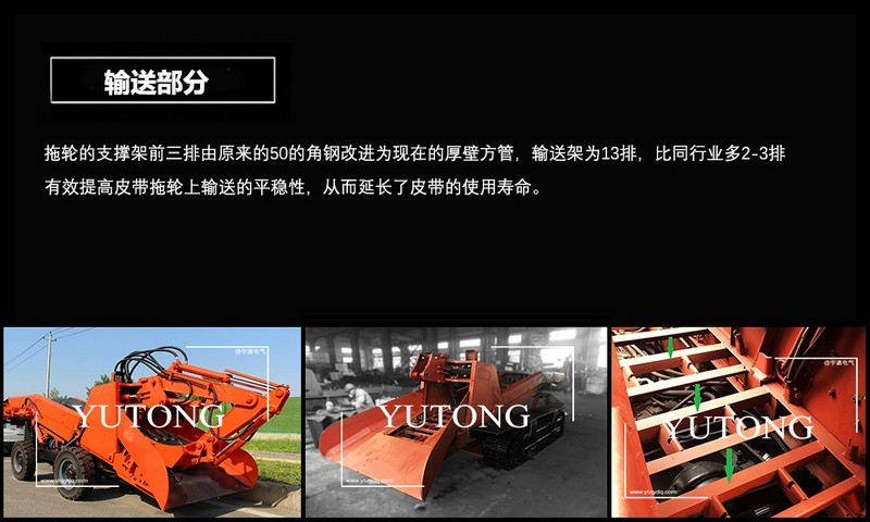 礦用扒渣機按行走方式分為兩種,一種是礦用履帶式扒渣機,一種是礦用輪式扒渣機。又稱扒渣機,坑道清理機,坑道出渣機。按照行走方式分為輪式和履帶式。它是及液壓行走,挖掘裝置,皮帶輸送,裝車,清理巷道底部五種功能。主要由電動機,液壓行走,挖掘裝置,行走裝置,皮帶輸送卸料和電器控制系統(tǒng)等部分組成。整車液壓系統(tǒng)由一臺15kw電動機為動力帶動齒輪泵,液壓油經油箱到多路閥到執(zhí)行動作元件再回到油箱,通過多路閥的四個手柄完成對液壓裝置的控制。它突出的優(yōu)點就是操作靈活,出渣效率高,以:2m*2m巷道為例,一排炮在一小時左右就可以清理干凈。